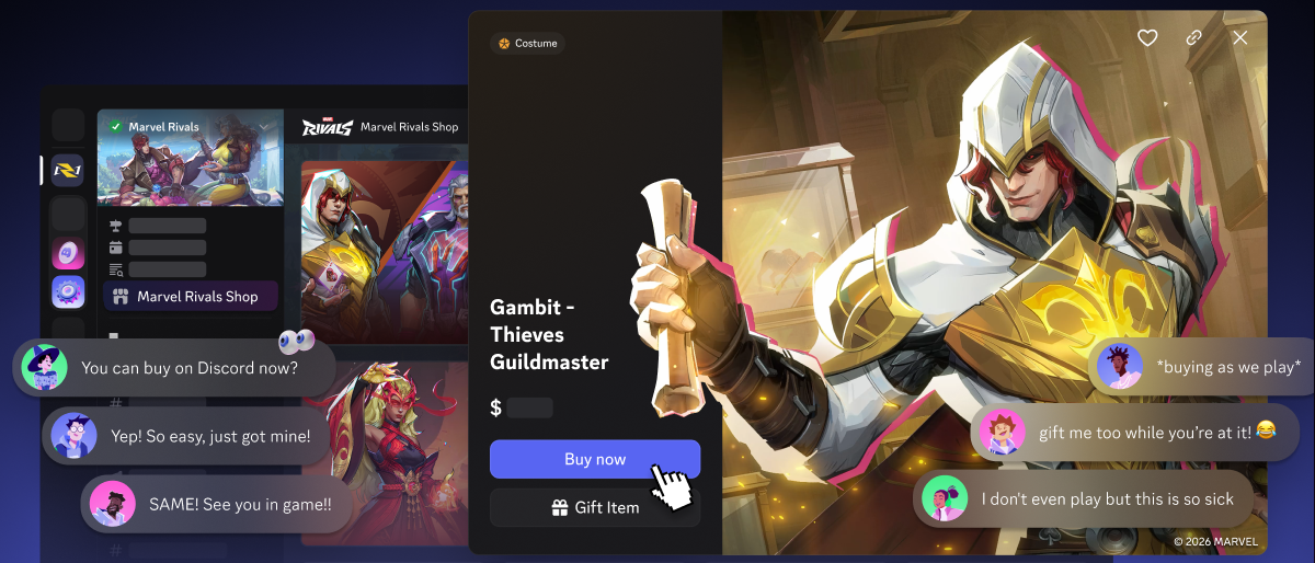 Discord is launching native commerce capabilities that let players buy and gift items directly inside official game servers, debuting with Marvel Rivals. This month also includes an action item for bot developers to review permissions before the Feb. 23, 2026 deadline for splits affecting Pin Messages and other bot functionalities. Plus, accelerate your development with a new Social SDK course for Unity, and read the Rust case study on using the SDK for high-stakes voice chat.